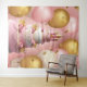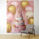 Fairytale castle birthday cake with balloon and gold confetti celebration for a child. Pink Happy Birthday Princess Castle Banner You can change background, size and styles of banner birthday event. Add text. Pretty pink fairy tale castle birthday cake with balloons and glitter. Perfect for surprise birthday greeting for the princess in your life.