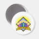 Well Designed High Quality Magnet. Colors are Vibrant Clear Excellent good size Diameter Circumference Fonts Red Folio Bold Clover Green Outline Puffy White Interior Image
