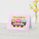 Delicious cupcakes...6 mouthwatering cupcakes in soft colors of yummy icing with sprinkles on top! Any excuse to party is the cute saying inside... perfect for all on your birthday card list!