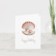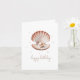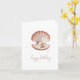 A delicate birthday greeting card featuring a watercolor-style illustration of a single, beige scallop seashell gently opened to reveal a luminous pearl nestled inside. The text "Happy Birthday" is in a graceful, handwritten-style script in a soft grey color placed elegantly below the shell, creating a sense of understated elegance and heartfelt wishes, perfect for a close friend or family member.
