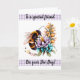 Happy Birthday Card. A watercolor print of a bee collecting pollen from pretty flowers. A purple gingham strip both above with the words 'To a special friend' in black and below the main image, with the words 'On your Bee - Day' in black. The main colors are purple and gold.. Inside the message reads, "enjoy your special day." All messages can be customized to create your own, unique card.