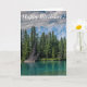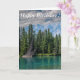 This is a mildly humorous and good-natured birthday card. The card is vertical with a photo of a lake, trees and mountain taken in Banff in Alberta, Canada. Most likely it would be sent by a friend.