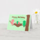 Cute birthday card with daddy bird and three baby birds singing to mommie bird. Father and mommie bird sitting on tree limb, baby birds sitting in nest. Neutral peach, green and brown colors.