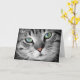Happy Birthday Card with the face of a black, gray and white tigered cat. Make cat-fans happy on their birthday!