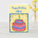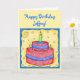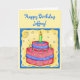 Happy Birthday card features a red and blue cake with green candles on a yellow background with a whimsy blue border on a yellow card. Great for 1st (first) or any birthday. Fully customizable for personalization and message. Celebrate a birthday or other occasion with the whimsy cake and cupcake original art that is perfect for both boys and girls as well as adults. The colors are in both softer and more vibrant colors.