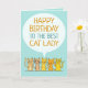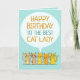 Happy Birthday to the best Cat Lady. Inside the card, it says One year close to becoming a crazy cat lady. Cute and adorable hand-drawn kitty cats with a big speech bubble. All text can be customized and can be changed or left as is. Light fawn beige with a pink nose and light teal green/blue background that can be changed to any color. Great for cat lovers, cat owners, cat rescuers, and cat hoarders for fun on their birthdays.
