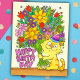 Send this cute, colourful cat card to friends and family to wish them a Happy Birthday. It's perfect for cat moms and cat dads or just anyone who likes cats and flowers.