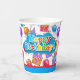 A Colorful Happy Birthday Paper Cup In A Celebration Style With Balloons, Hats And Gifts For A Kids Party
