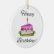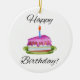 An illustrated slice of birthday cake with a candle and the text Happy Birthday!