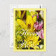 Happy Birthday postcard - A cheerful and bright yellow and pruple bouquet of Asiatic Lilies, Daisies, Aster, and Solidago. This photo has been turned in to a digital water color painting. Looking for more prints or products? Feel free to visit my store: http://www.zazzle.com/timelessmomentsphtgy