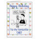 Chef cartoon.Golf dinner where the cutlery is in a miniature golf trolley. Personalize with your choice of wording and inside message. Birthday card for a golf club chef or golfer.