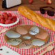 These fun paper plates feature multicolored chicken eggs in the shape of a flower. Great for chicken or egg lovers!