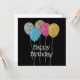 Modern and pretty birthday card. The design features silver, gold, pink, and blue glitter effect balloons on a black background. You can change or edit the text.