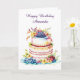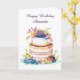 A sweet birthday card that you can add a name to, featuring a pretty birthday cake covered in flowers and fruit. On the inside is a coloring page with a birthday cake.