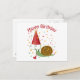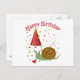 Happy Birthday! Cute confetti party snail wearing a festive hat with a blowout in his mouth
