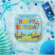 Happy birthday construction builder theme with little builder vehicles and hat.