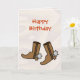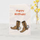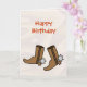 This birthday greeting card for country and western dance lovers has an image of cowboy boots with spurs on the cover. It says Happy Birthday. You can change this in the template if you want to.