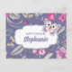 Happy Birthday. Pink Lilac Floral Pattern and Butterfly Watercolor Painting Birthday Postcard for her with personalized name. Matching greeting cards, favors and gifts available in the Birthday Category of our Store.