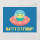 Happy Birthday, Cute Alien in Spacecraft Postcard