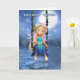 A sweet fairy on a swing bathed in the moonlight, pretty peacock colors on her clothing and matching flower in her hare, a bright pretty card for any fairy fan