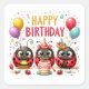 Happy Birthday Cute Ladybugs Celebrating Square Sticker