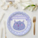 NewParkLane - Cute kids birthday paper plates, featuring a cute purple monster, against a lilac background with a pattern of little white drops, and a 'Happy birthday!' wish in a lilac banner in fun, script typography.