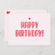 NewParkLane - Cute Postcard, with a Happy Birthday wish in a sweet red typography with little hearts, against a blush pink background.