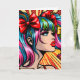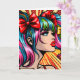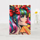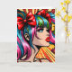 Colorful comic pop art girl with colorful hair, red lipstick and bows in her pigtails,