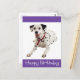 Aww...who can resist the cute face of a Dalmatian puppy dog? This charming Happy Birthday greeting postcard features a portrait of a resting Dalmatian puppy dog resting against a crisp white background. A vibrant purple border highlights a Happy Birthday greeting.