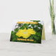 This card featuring a deep yellow hibiscus with a white throat is perfect to personalize for many occasions. In the background is a tropical garden, crowned by a coconut palm. On the back of the card is a beautiful pink hibiscus.