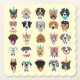 Cute illustration of various dog breed faces all dress in birthday attire. Perfect for dog lovers or pets birthday!