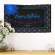 Make your birthday celebration a memorable affair with this exquisite can banner design. Featuring a sleek black background adorned with intricate blue floral accents and shimmering beads, this banner set the tone for a truly stylish event.