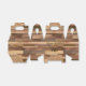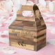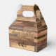 Your custom text highlights this faux wooden favor box with a pretty laurel twig.