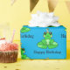 Green and white frog with birthday hat gift wrap.
