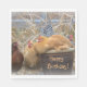 These birthday paper napkins feature a group of chickens taking turns sitting on the flower pot throne. Great for chicken lovers. Text can be eliminated, added to or changed to fit many occasions.