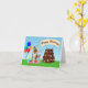 This festive German Shepherd is surrounded by colorful balloons, wrapped presents, and a decadent three tier chocolate cake decorated with dog bones and paw prints, this card is perfect for dog lovers.