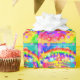 Bright and beautiful, psychedelic Happy Birthday wrapping paper, matches our birthday party place setting (HAMbyWhiteGlove). Every color of the rainbow seems represented here with red, green purple, blue, orange, aqua, yellow and more! Such a bright, happy and beautiful eye-catching design, it's a party unto itself! 203-302-0337