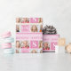 Cute 3 photo collage happy birthday wrapping paper for a little girl or toddler. Celebrate your child's birthday with cute photographs of them on this add your own photograph gift wrap with adorable pretty pink squares. Add their name and age.