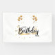 This banner showcases the words "Happy Birthday" in a unique print font with black letters with birthday party decals throughout such as balloons, gifts, confetti and more in this birthday theme and style. This banner has single side printing outdoor safe measures 3"x5" made with an elegant matte finish and is both fade and tear resistant for Indoors or outdoor use great for advertise anything, from birthdays to graduation, weddings to anniversaries. Hemmed and thermally welded edges for neat finish outdoor banners can be bought with metal grommets.