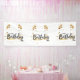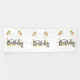 This banner showcases the words "Happy Birthday" in a unique print font with black letters with birthday party decals throughout such as balloons, gifts, confetti and more in this birthday theme and style. This banner has single side printing outdoor safe measures 4"x12" made with an elegant matte finish and is both fade and tear resistant for Indoors or outdoor use great for advertise anything, from birthdays to graduation, weddings to anniversaries. Hemmed and thermally welded edges for neat finish outdoor banners can be bought with metal grommets.