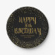 Happy Birthday Gold Glitter Any Year Custom Black Paper Plates