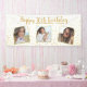 Celebrate a big birthday with this banner featuring 3 photos of the birthday girl/boy, 2 custom text headlines, all set against a white background accented with faux gold glitter confetti sparkles. Fun and festive perfect for any birthday celebration.