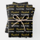 Happy Birthday Gold Script Name Black and White Wrapping Paper Sheets