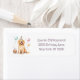 Cute cartoon illustration of Golden Retriever dog wearing a birthday hat. Perfect for pet lovers or dog parents.