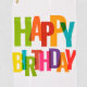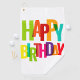A vibrant birthday golf towel with bold colorful letters spelling "Happy Birthday".