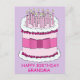 Cartoon cake with many candles on top and the words 'Happy Birthday Grandma' underneath. The card has a flat mauve background.