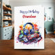 A cute watercolor gaming themed birthday card for a grandson. An ai illustration of a video game, games, headphones and other fun accessories on the front of the card. Have an awesome day on the inside. All text on the card can be edited in the personalize area.