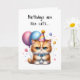 Add a little humor for someone special with this cute kitten holding balloons, wearing a blue bow tie and party hat on this birthday card. Birthdays are like cats… they sneak up on you! Even the GRUMPY ones!