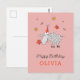 This Happy Birthday Postcard features a cartoon illustration of cute funny Sheep wearing birthday hat, holding the red flower and surrounded by butterflies. Great Card for kid's (girl) birthday! You can easily personalize the text (greeting and name) at the lower part of the card using Zazzle online tools. If you need help to personalize this card, don't hesitate to contact me via Zazzle, please.