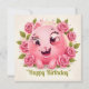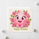 A cheerful, cartoonish pink cat sits at the center, surrounded by lush pink roses. The cat has large, expressive eyes and a wide smile, exuding joy and playfulness. The background is soft and light enhancing the vibrant colors of the roses!
